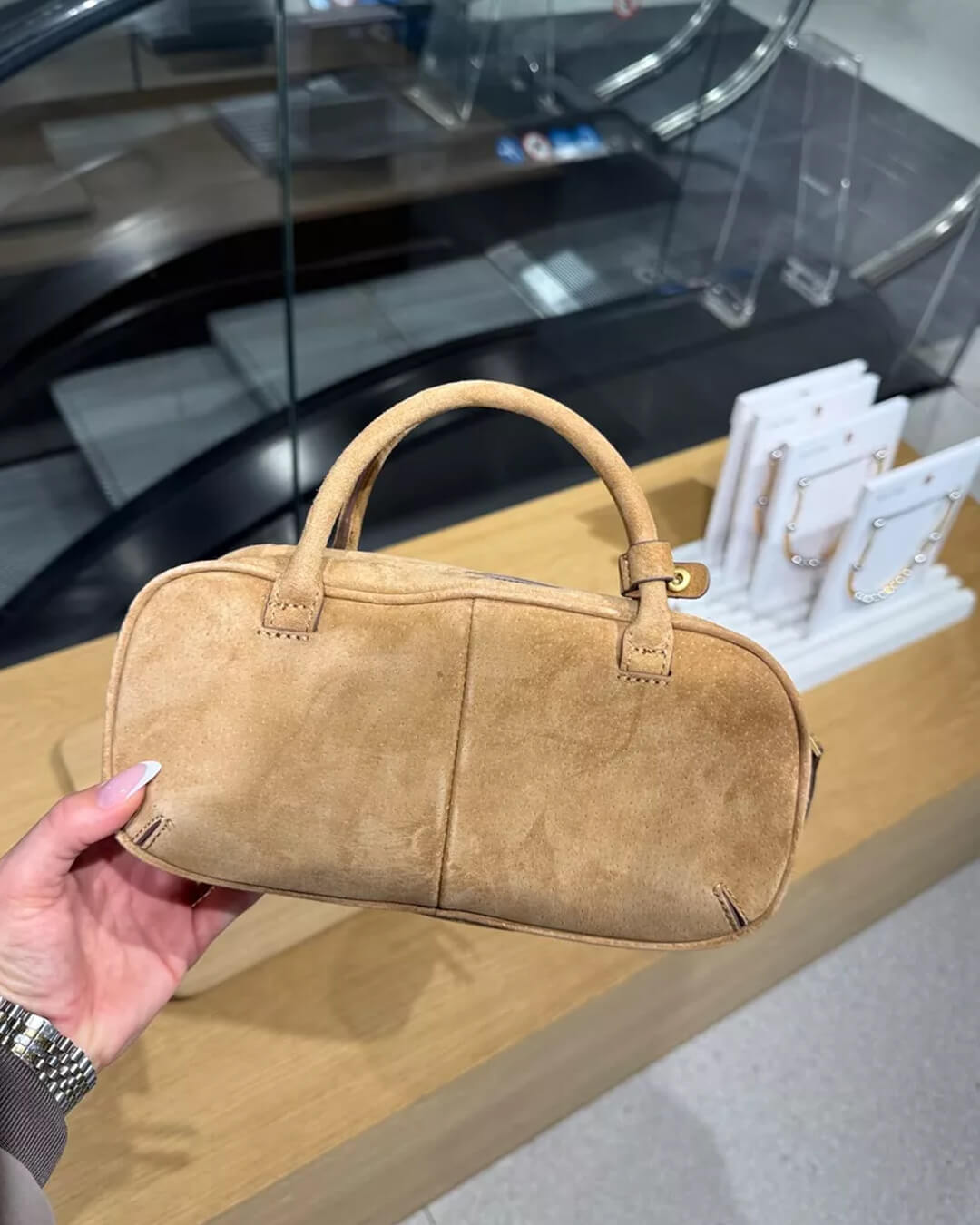 Entdecke die perfekte Verbindung aus Stil und Funktionalität mit unserer Suede Mini Double Handle Bag. Dieses luxuriöse Design ist ideal für Frauen, die ein schickes und lässiges Accessoire für jeden Anlass suchen. Die hochwertige Verarbeitung aus Wildleder, das kompakte Mini-Format und die praktischen Doppelgriffe machen diese Tasche zum Must-have für modebewusste Damen. Ob für den Alltag, besondere Events oder als modisches Statement – diese Tasche überzeugt durch Vielseitigkeit, Komfort und zeitlose Eleganz. Mit abnehmbarem Crossbody-Riemen und geräumigem Innenfach bietet sie ausreichend Platz für Deine Essentials und setzt gleichzeitig stilvolle Akzente. Perfekt für alle, die Wert auf Qualität, Design und Funktion legen.