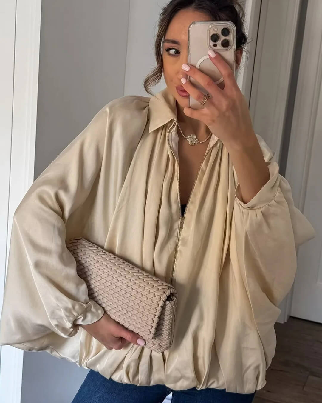 SOERA Ritchel Zip Up Pleated Jacket - Jackets - 1005010607183835-;Gh1774012030728646175 Beige XS
