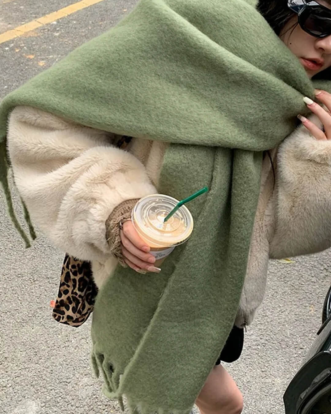 Thick Women's Winter Scarf - Soft Solid Pashmina Wrap with Tassels 0