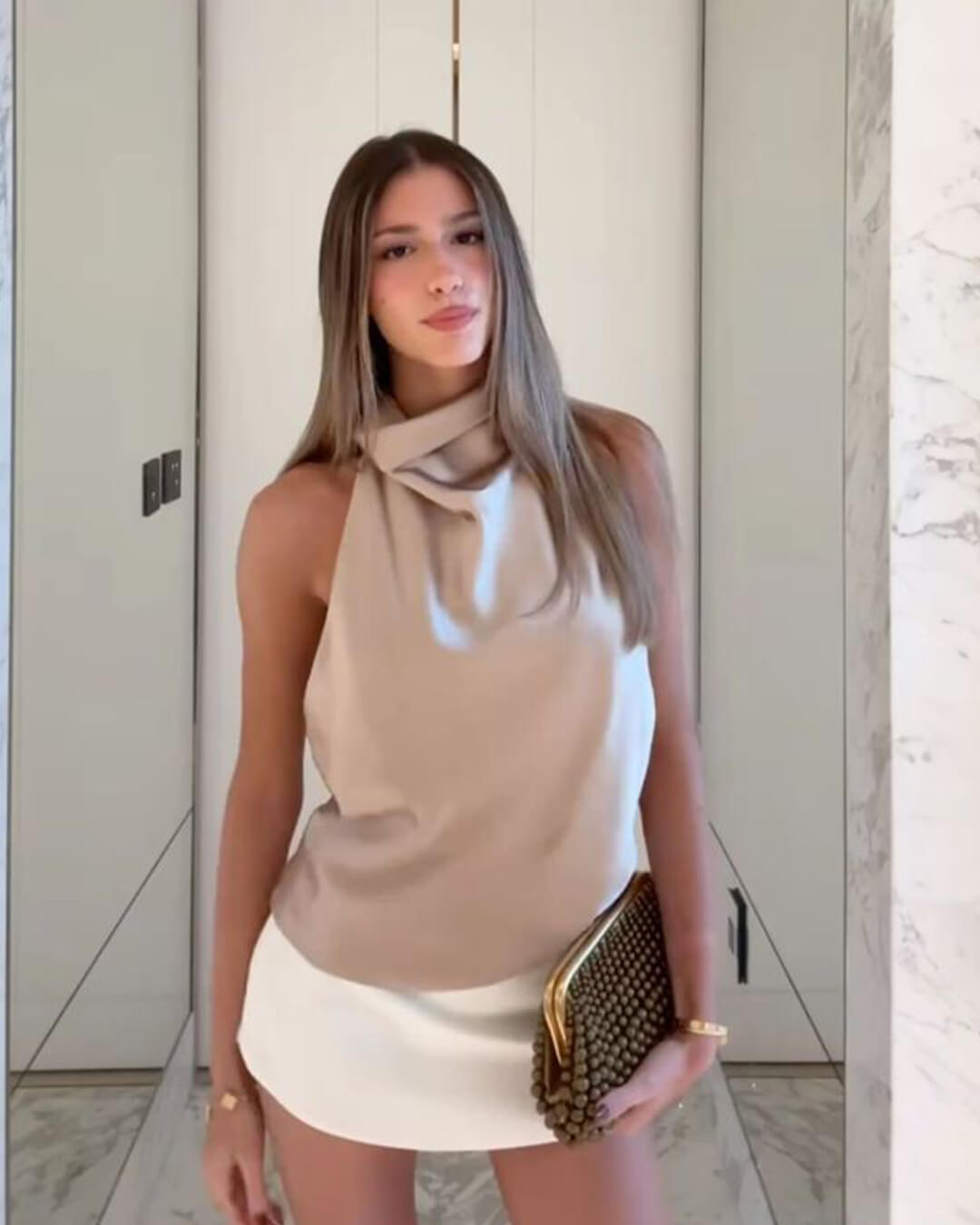 Il top Anastasia Halter Backless in raso รจ un capo chic ed elegante che valorizza il tuo guardaroba stagionale. Grazie alla sua finitura liscia in raso, questo top aggiunge un tocco di raffinatezza a qualsiasi look. Perfetto per chi desidera un top elegante in raso, ideale per outfit da giorno e da sera.