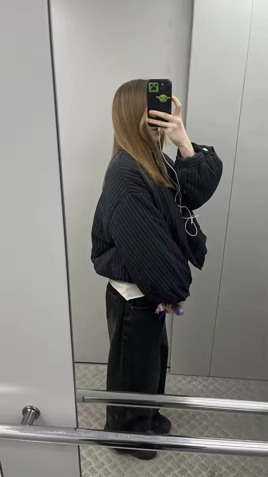 Giacca a righe con collo alla coreana Selena