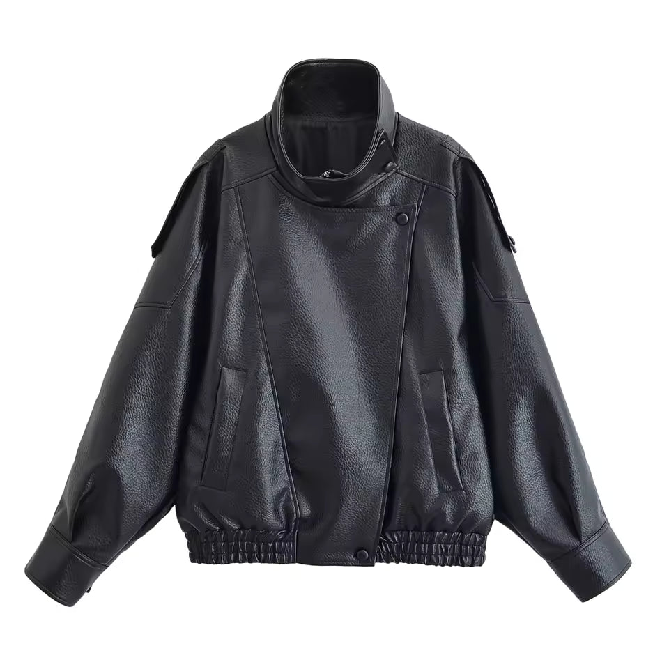 Elena Asymmetrische Knopf-Taschenjacke