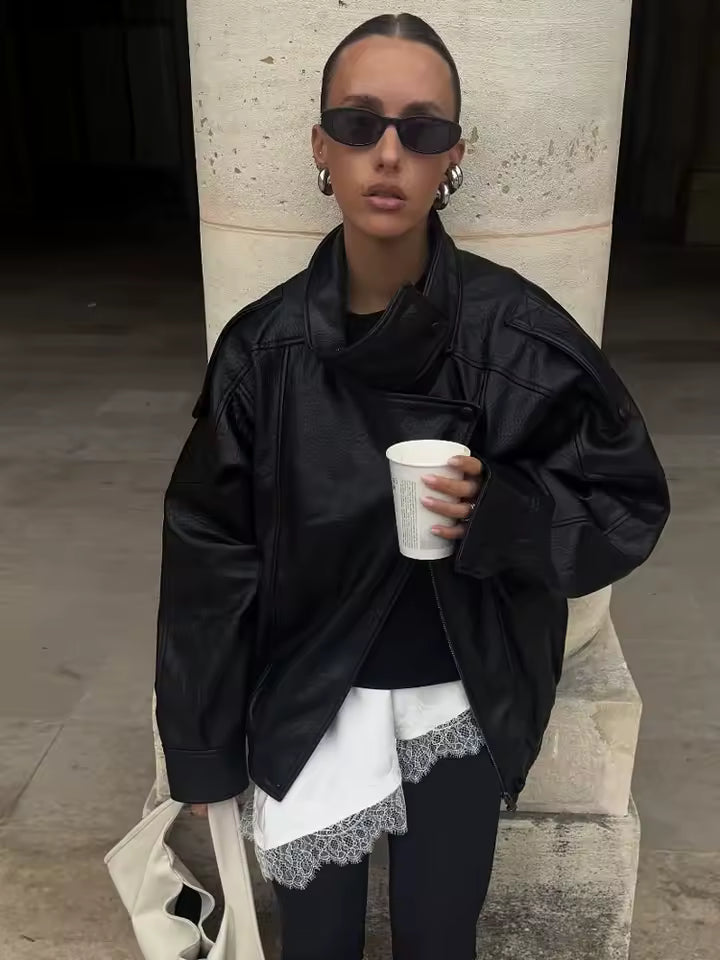 Der lockere Schnitt der Elena eignet sich perfekt zum Layering über figurbetonte Teile oder fließende Kleider. Das asymmetrische Design verleiht minimalistischen Outfits architektonische Raffinesse, während die praktischen Taschen deine Essentials griffbereit halten.